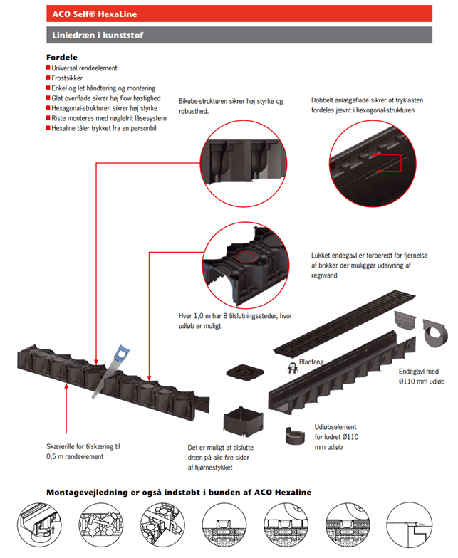 Dette linjedræn er fra den tyske producent ACO, som har leveret aquadræn og linjeafvanding til det danske marked i mange år.